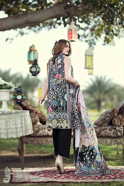 Digital Printed Shirt With Tilla & Thread Embroidery With Cambric Trouser & Lawn Dupatta