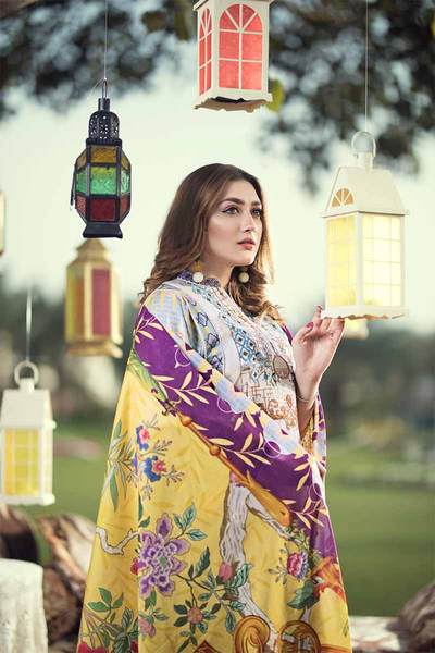 Golden Jacquard Digital Print Shirt, Digital Lawn Dupptta & Jacquard Trouser